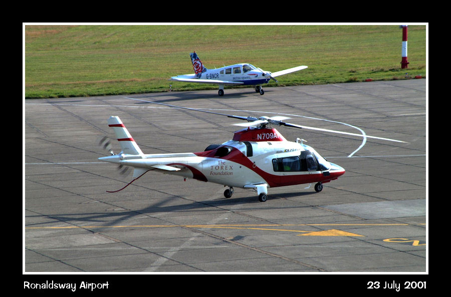 Torex Foundation Agusta 109 Power, N709AT, ground taxies on the west apron