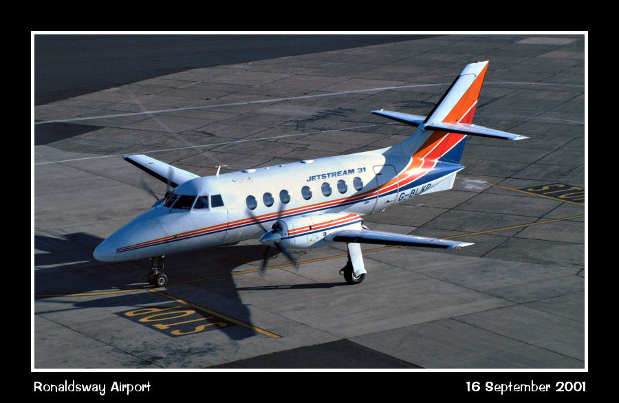 BAe operated Jetstream 31, G-BLKP, parks on stand 5