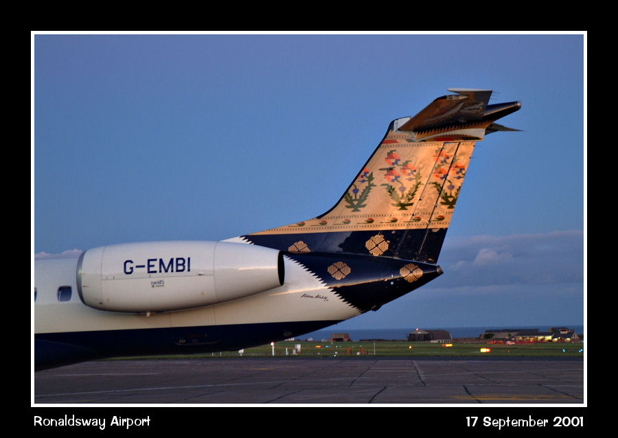 A closeup of the tail of British Regional ERJ145 G-EMBI