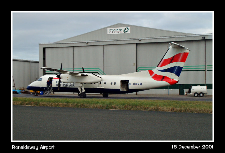 Unusual visitor to the Manx Airlines engineering base was Brymon Airways Dash8-300 G-BRYM
