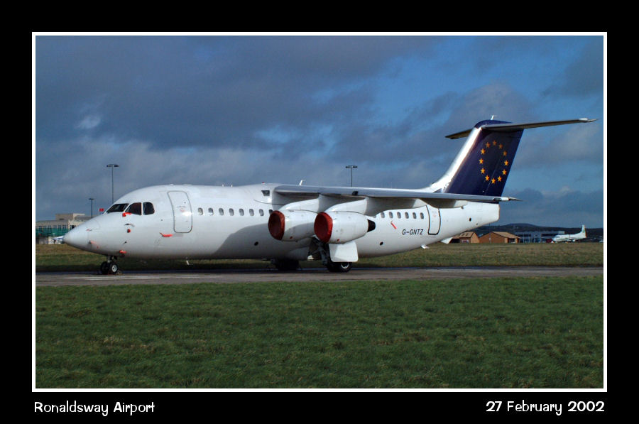 British Regional BAe146-200, G-GNTZ, in 'EU' colours having been on lease to Lufthansa