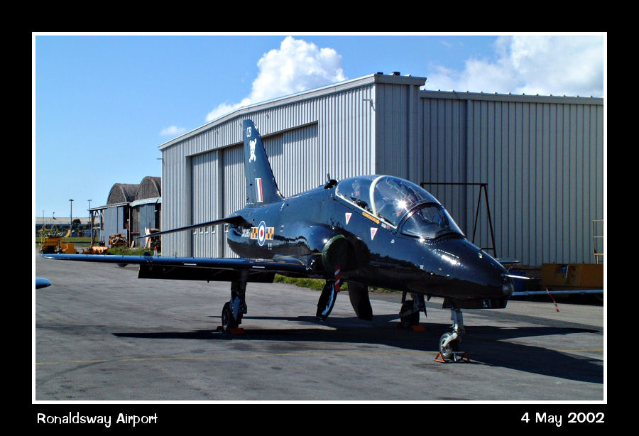 RAF Hawk T1A XX285/CB at Manx Airlines hanger