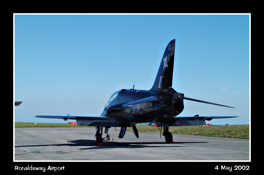 RAF 100 Sqn Hawk T1A XX289/CI outside the Manx Airlines hanger