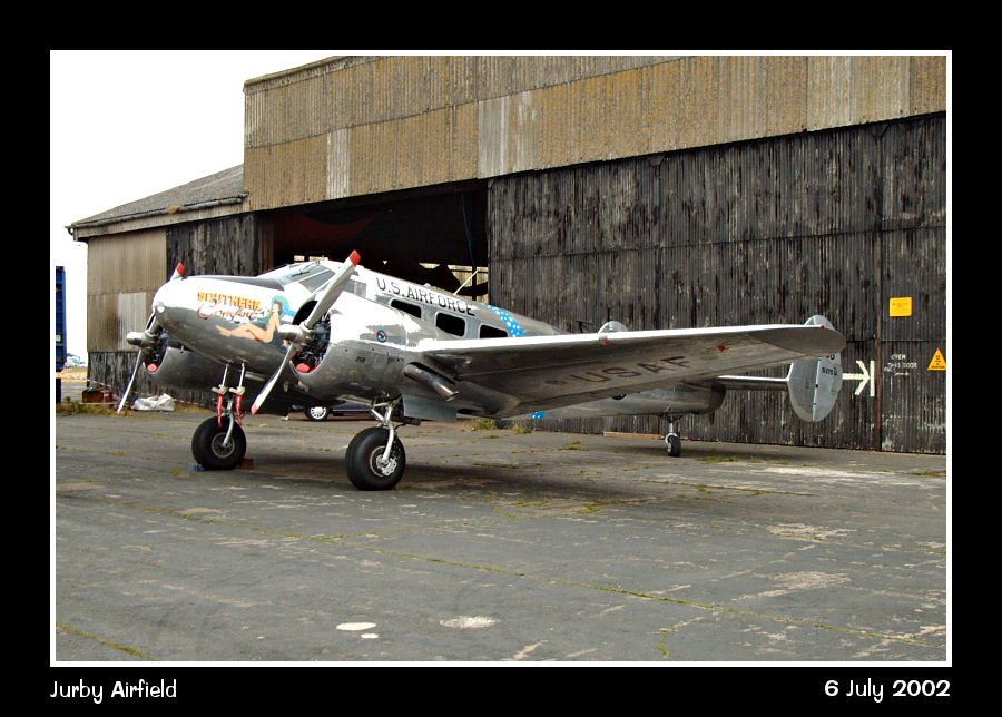 Beech C45H G-BSZC aka 'Southern Comfort' outside one of the WW2 hangers at Jurby