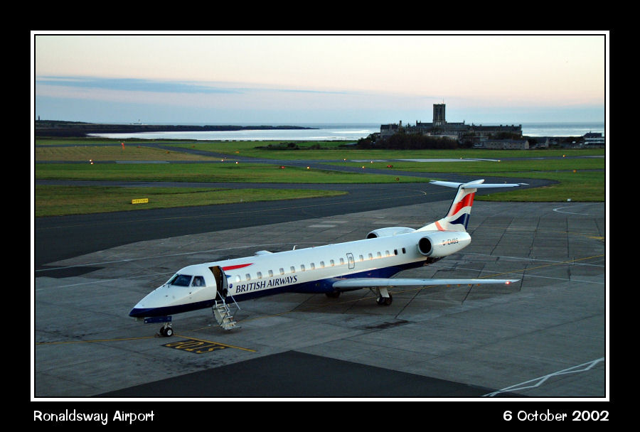 BA erj145, G-EMBS, parked in the evening light on stand 4