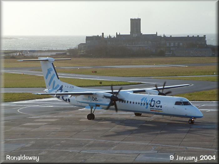 Regular equipment on the FlyBe Birmingham route is the Dash8-Q400, here GJEDN is about to park on stand 4.
