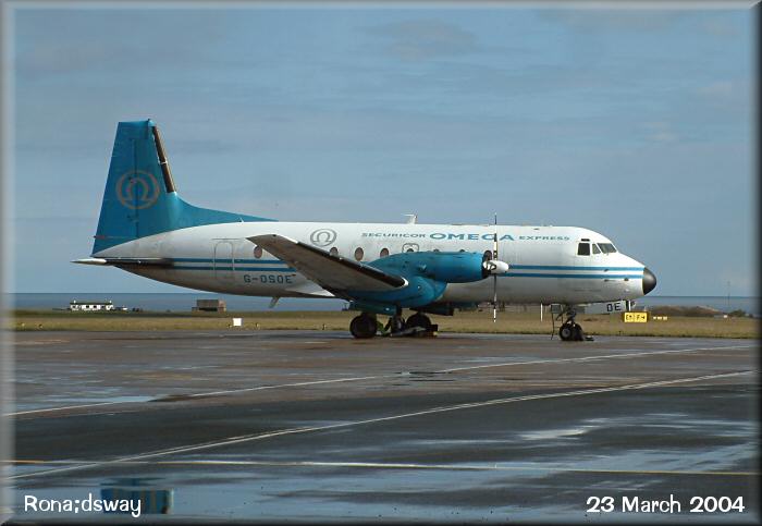 The Emerald HS748s are a daily sight on freight and Mail services for the island. Here, Securicor Omega Express liveried G-OSOE waits for the next trip.