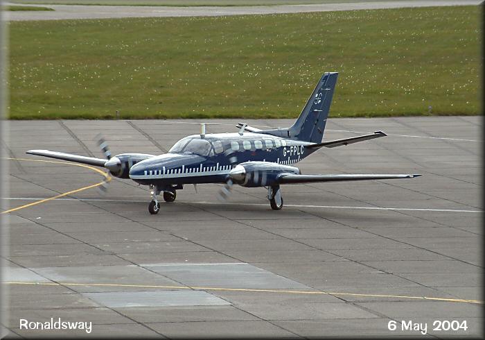 Flight Precision's Cessna 441, G-FPLC, taxies after carrying out a calibration on the runway 21/03 PAPIs.