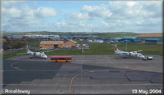 Mid mornings at the moment can see up to 10 passenger aircraft on the apron at the same time, using every stand we have. Here two FlyBe Dash8 Q300s occupy 'freight' stands 8 & 9, with the airport bus doing sterling service.