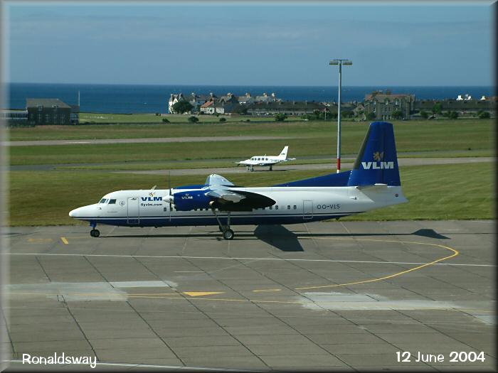 VLM Fokker 50, OO-VLS, operating London Stansted services for EuroManx.