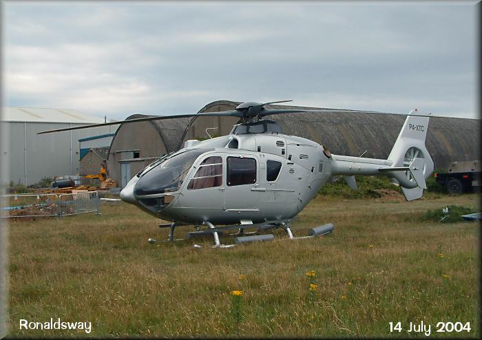 I think this must be the first time we've had an Aruba registered aircraft at Ronaldsway. Eurocopter EC135, P4-XTC parked on the grass.