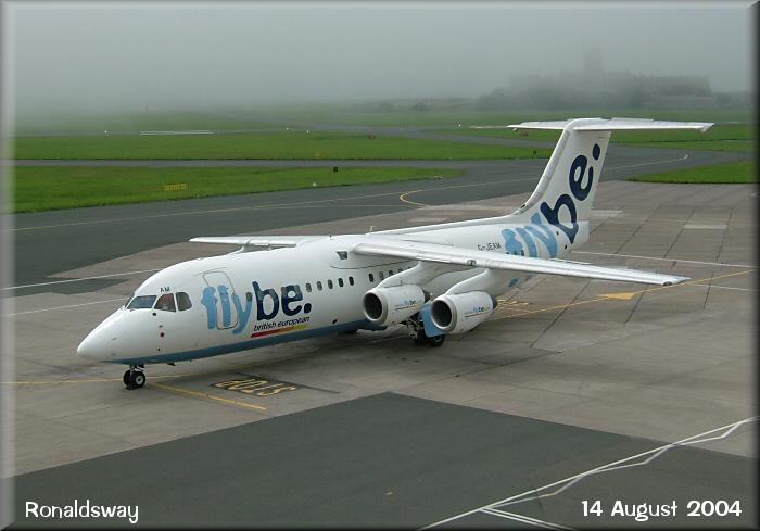 FlyBe's BAe146-300, G-JEAM, operating the busy Saturday Birmingham flight - as sea fog starts to drift in over the airport.