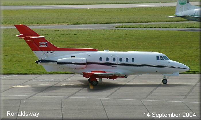 RAF 32 Sqn HS125, ZD703, about to taxi for departure.