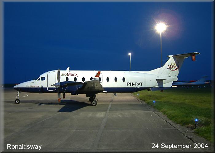 EuroManx BE1900D, PH-RAT, parked at the edge of the west apron, as one of the ART42 taxies in.