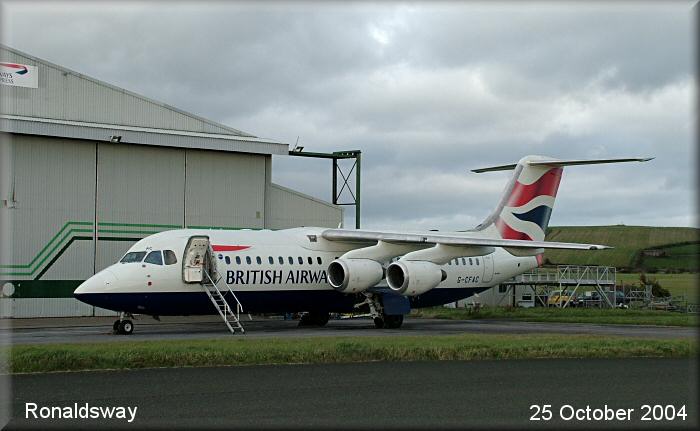 BA CitiExpress Avro RJ100, G-CFAC, outside the BA maintainance hanger.