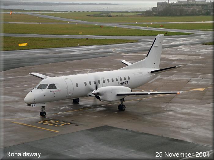 Loganair Saab 340A, G-GNTB in a rather uninspiring white scheme.