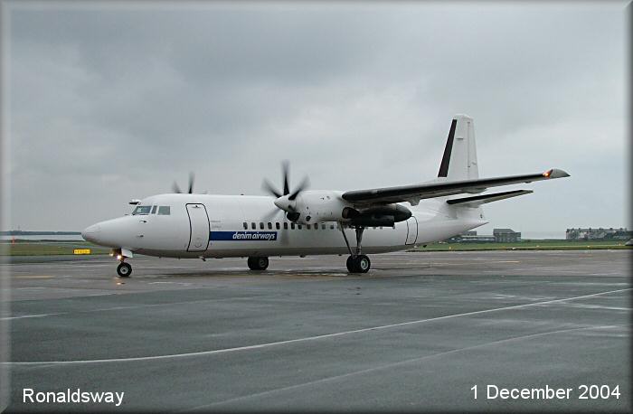 Denim Airways Fokker 50, PH-KXM, taxies for departure on the EuroManx