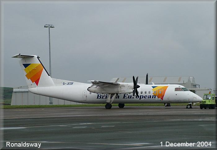 Spending it's days flying Belfast-IOM-London City, British European's Dash8-Q300, G-JEDF, pauses briefly at Ronaldsway.