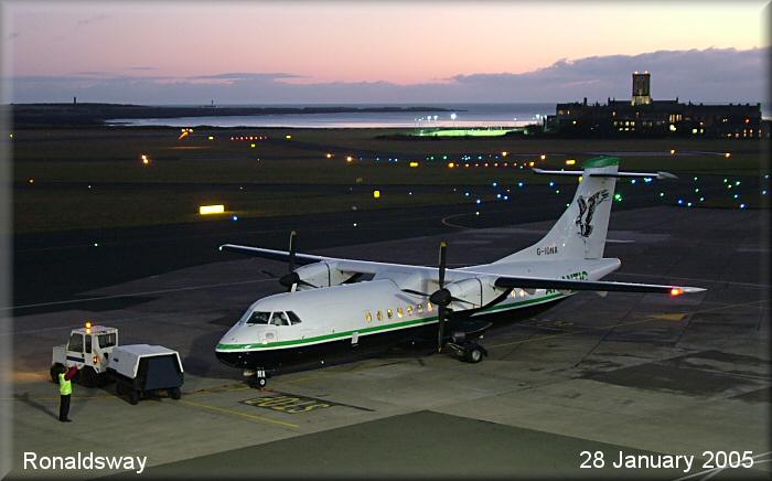 The last light is fading from the sky as Air Atlantic ATR42, G-IONA, gets start clearance for the evening EuroManx flight to London City.