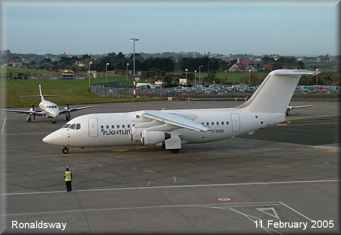 Currently serving on the EuroManx London City route, awaiting arrival of their first RJ70, Flightline's BAe146-200 G-DEBE has just pushed back from stand 3.