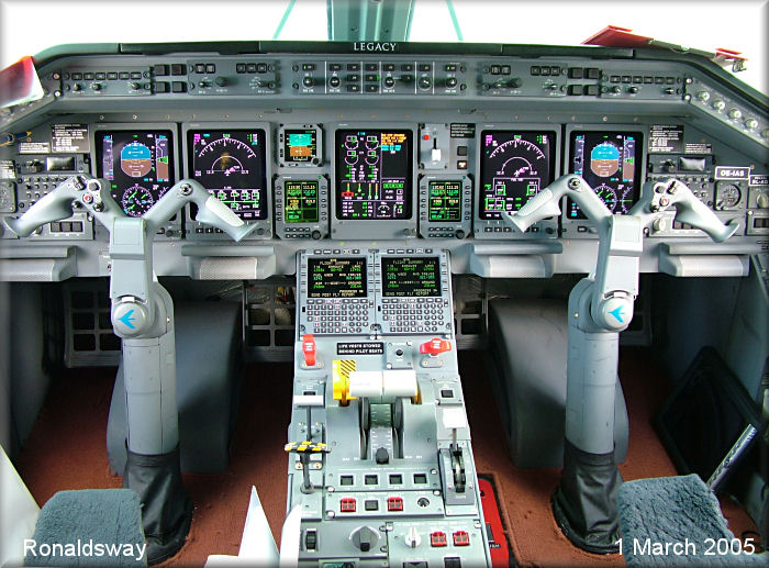 The modern 'glass' flightdeck on the Legacy differs in several respects from