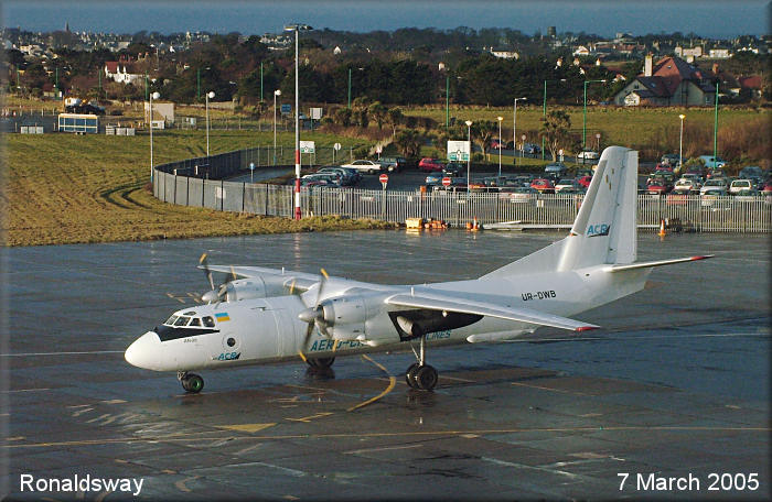 Aero Charter AN26, UR-DWB, taxies for departure to Dublin after bringing in