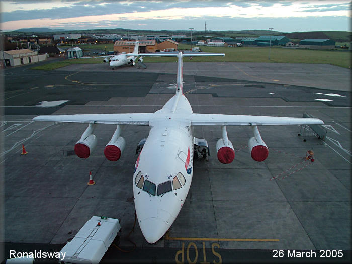 It's first light and BA CitiExpress BAe146-200, G-MIMA, awaits the first London service on what was rumoured to be her last day of IOM services.