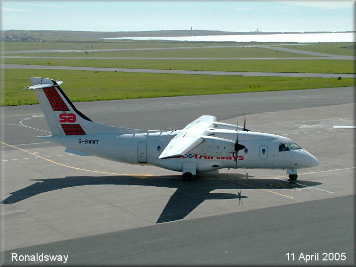 Scot Airways Dornier 328, G-BWWT, arrives on stand 4 operating a London City