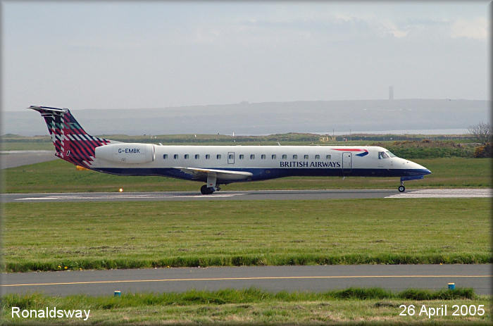 BA CitiExpress ERJ145, G-EMBK, backtracks for a full length departure from runway 08 after visiting the BA maintainance facility.