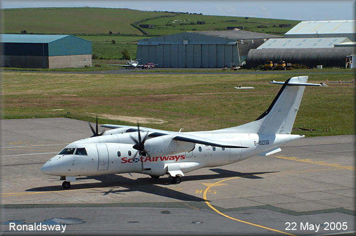 SotAirways Dornier 328, GBZOG, taxies in after positioning in from Edinburgh to operate services for Euromanx.
