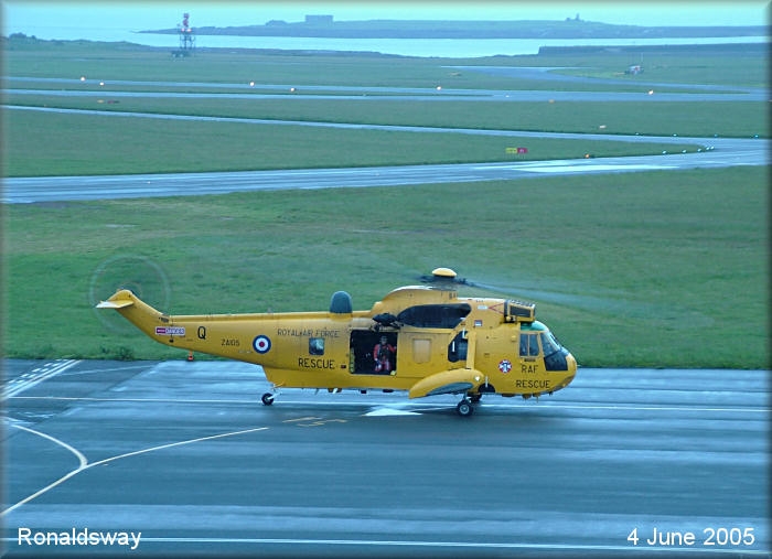 first light at Ronaldsway as RAF Search & Rescue SeaKing, ZA105/Q parkes