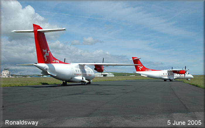 The two EuroManx Dornier 328s, still parked in 'Area Victor',
