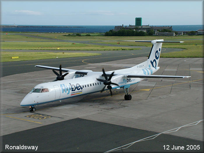 FlyBe dash8-Q400, G-JECG, arrives from Birmingham.