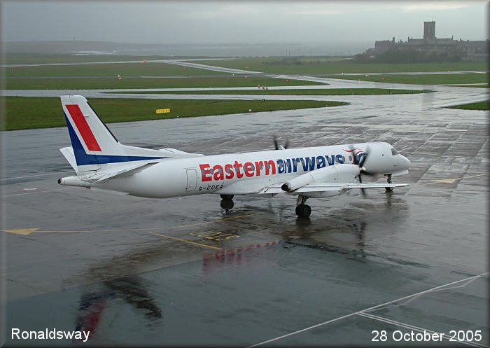 Eastern Airways Saab 2000, G-CDEA, visited on a very wet afternoon, substituting for an unserviceable Jetstream 41..