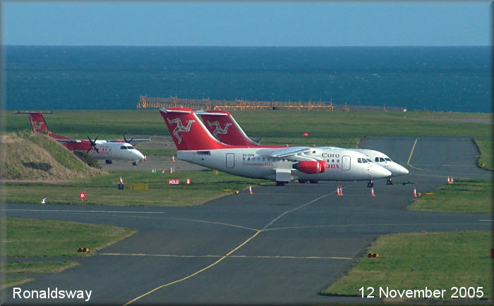 A telephoto view from the control tower looking along the former northern taxiway, where the two Euromanx Avro RJ70s were parked, with EI-CPK nearest.