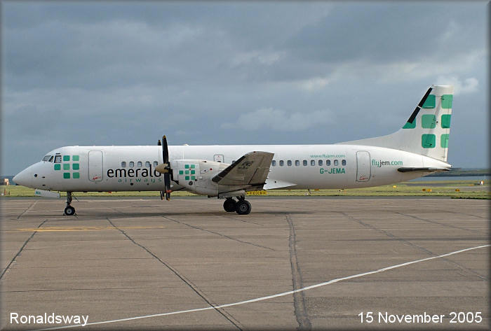 Emerald Airways ATP, G-JEMA, which these days flies EuroManx services although still in Emerald colours..