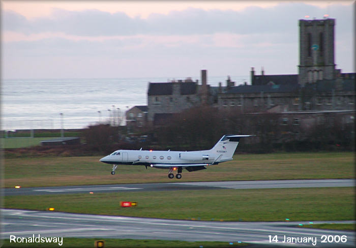 Gulfstreram 3, N300WY about to touch down on runway 08.