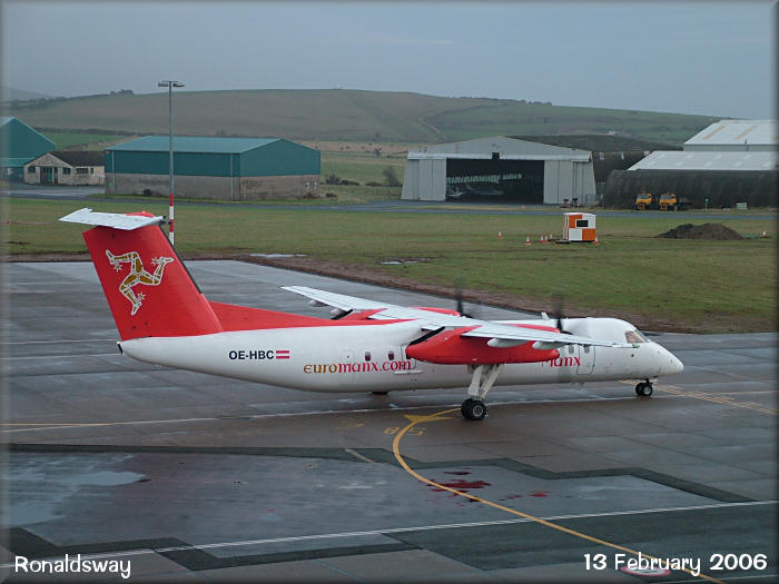 EuroManx Dash8-Q300, OE-HBC, taxies out for a morning service. This aircraft was formerly G-JEDD with British European.