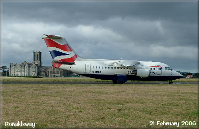 With no Luton service this morning, BA CitiExpress BAe146-100, G-MABR, has been towed to remote parking at 'Southpark'.