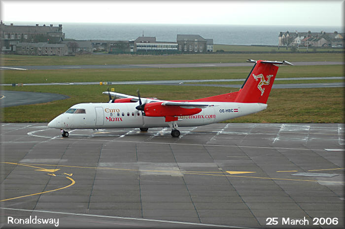 Euromanx Dash8-Q300, OE-HBC, taxies out for a Saturday morning flight.