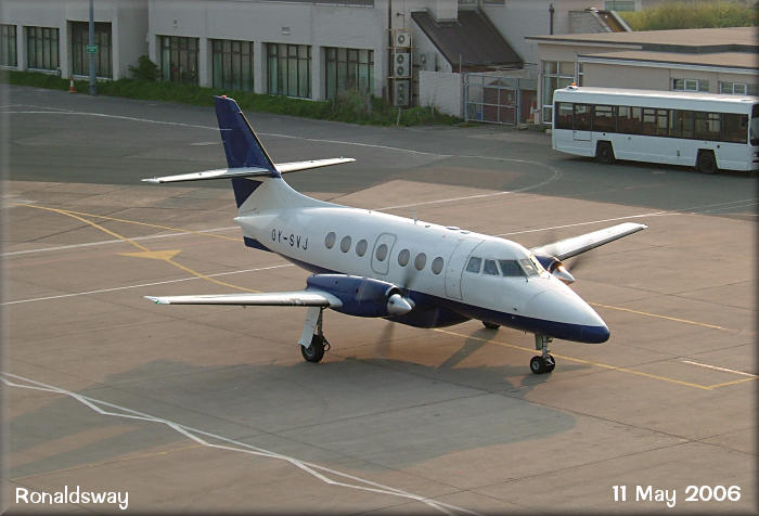Former Sun Air Jetstream 31, OY-SVJ, operating for British Northwest on the Blackpool-IOM-Belfast service. The former British Airways colours are still evident!