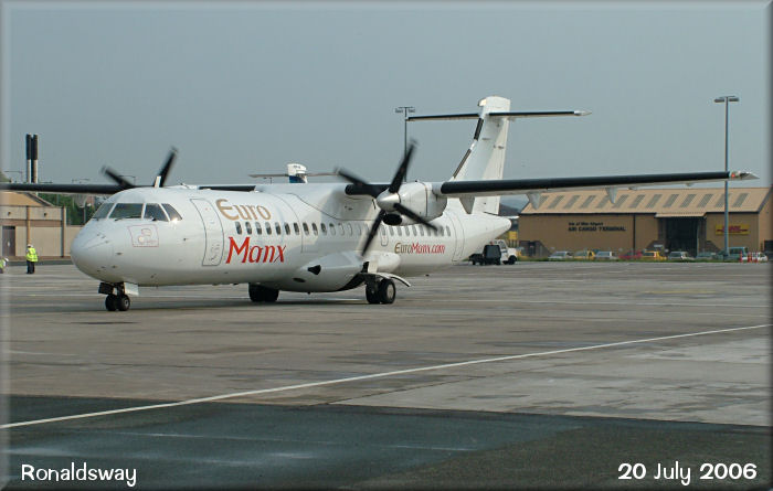 EuroManx ATR72, EI-REJ, arrives on stand from Liverpool..