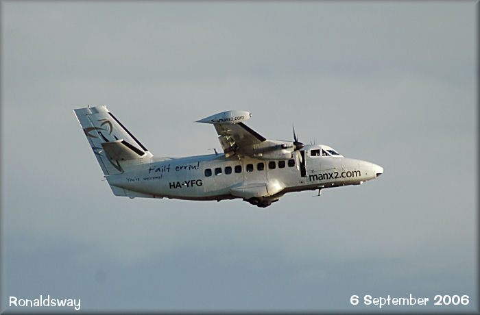 Operating on their Blackpool and Belfast route, Manx2 Let 410, HA-YFG, is pictured shortly after departure..
