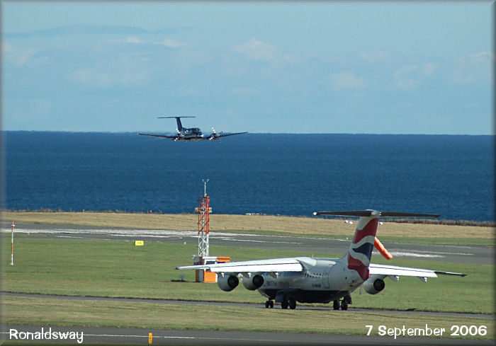 The Flight Checker aircraft makes a low go-around as the afternoon BA Gatwick service taxies towards the runway..