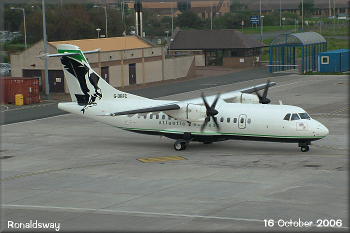 Operating for EuroManx while one of their Dash 8s is unavailable, Air Atlantique's ATR42, G-DRFC, has pushed back and is about to taxy.