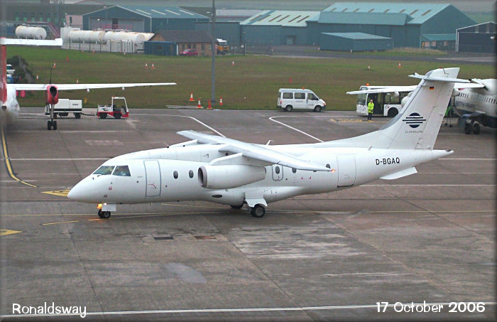 Cirrus Aviation Dornier 328JET, D-BGAQ,taxies onto stand 10..