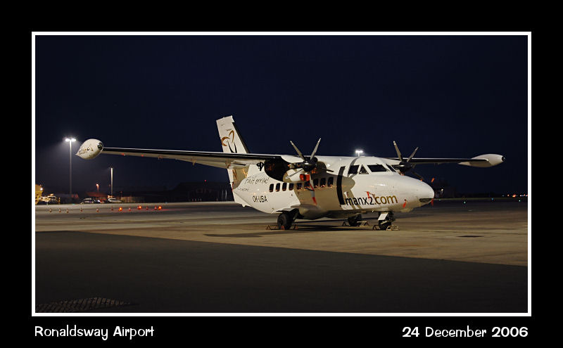Manx2 Let 410, OK-UBA, in a night shot on stand 11