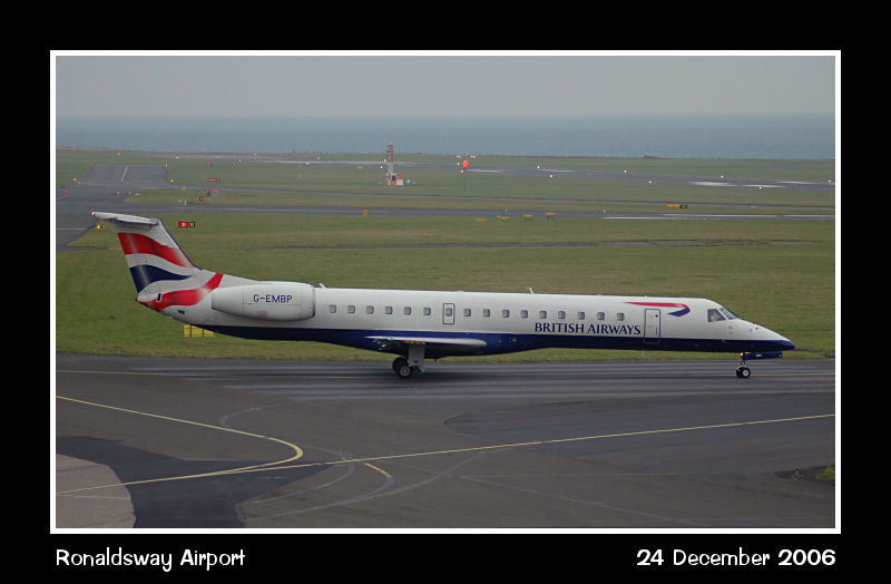 BA Connect ERJ145, G-EMBP, taxies out after maintainance at the former Manx Airlines base, now under threat of closure with the BA Connect sale to FlyBe