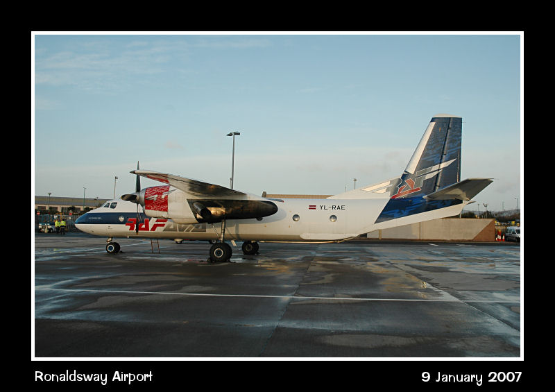 RAF Avia AN26, YL-REA, parked on the east apron after bringing the mail in from East Midlands
