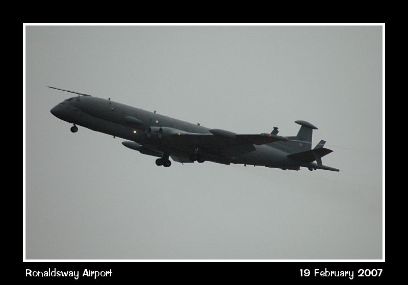 Pictures on the second approach (of eight!), Nimrod MRA4 ZJ516, climbs away into the murk.